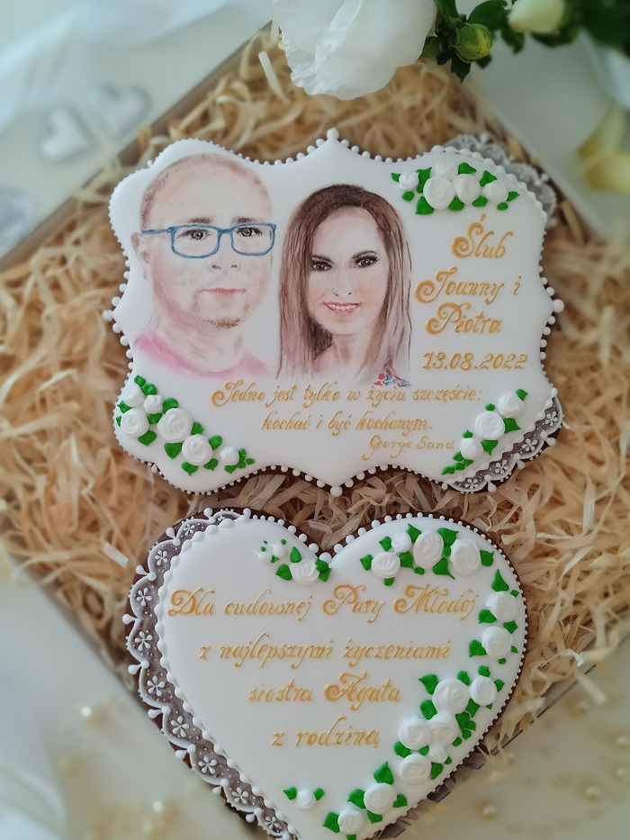 Pierniki które cieszą się największym zainteresowaniem i które mi sprawiają największą satysfakcję to portrety oraz pięknie, precyzyjnie, ręcznie wykonane napisy.