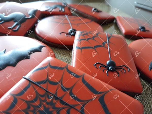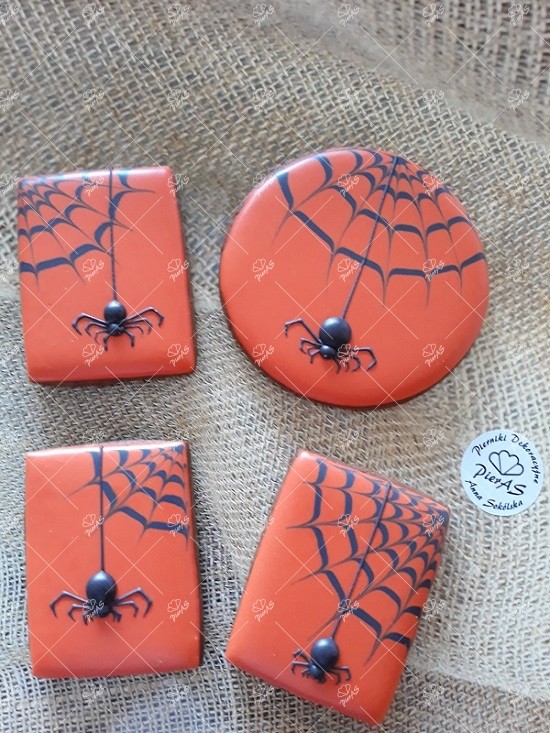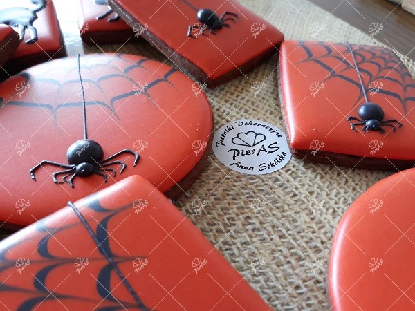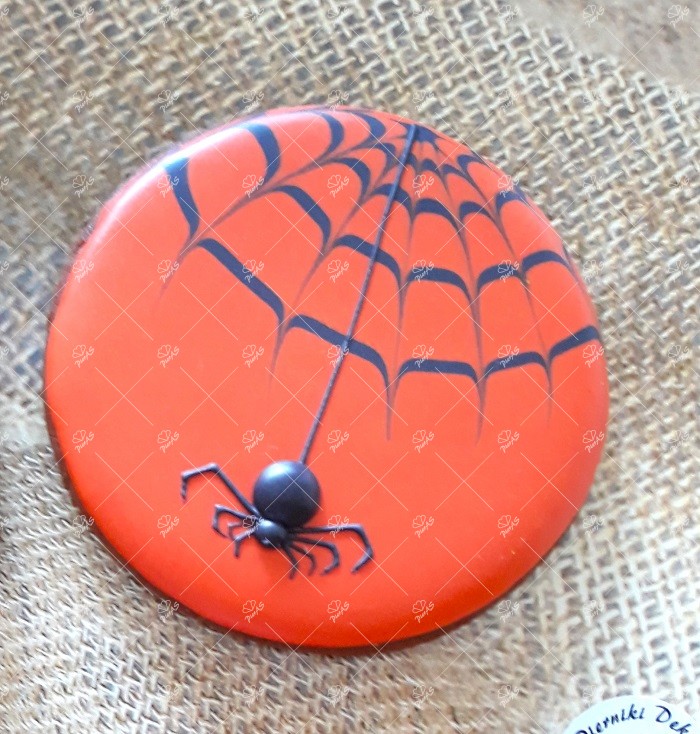 Piernik w kształcie koła z pajęczyną i pająkiem,