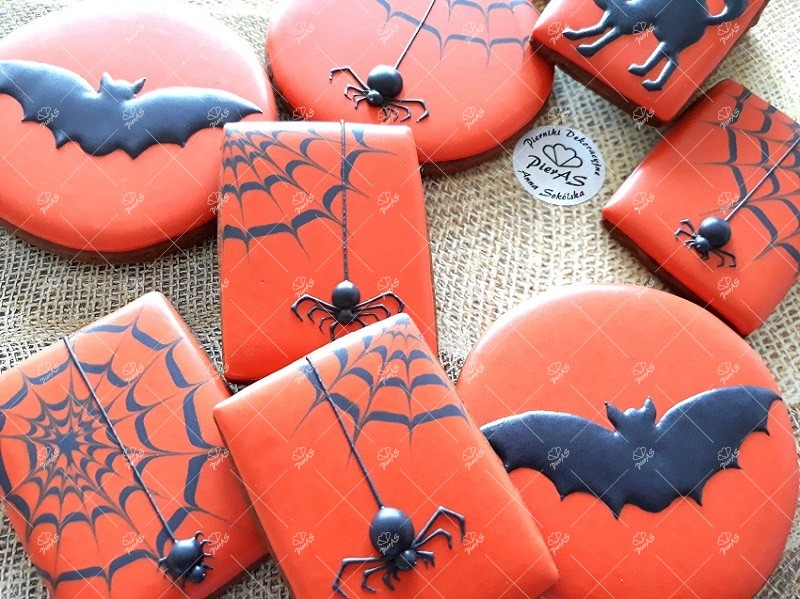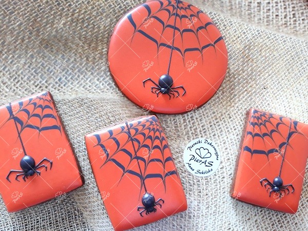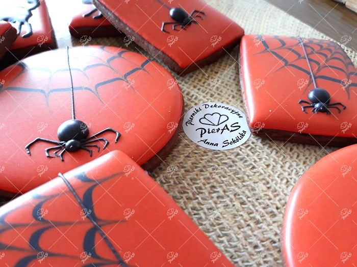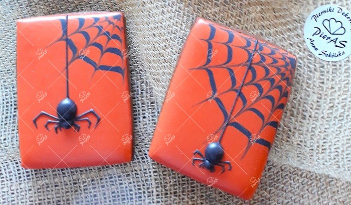 Piernik w kształcie prostokąta z pajęczyną i pająkiem