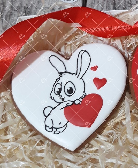 Piernik w kształcie serca z króliczkiem.