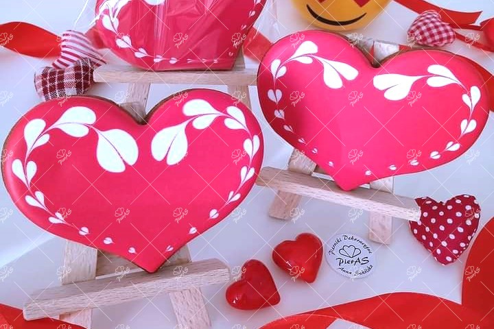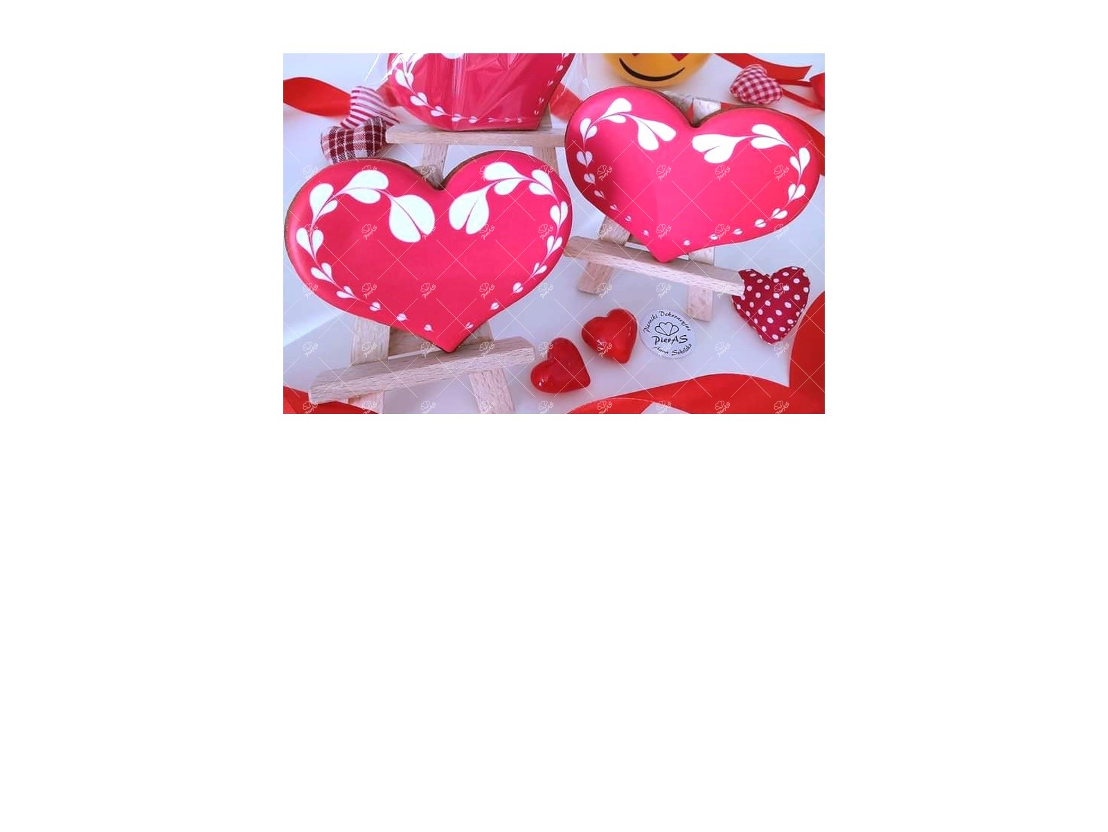 Serce czerwone z białym wzorem, w kształcie serduszek.